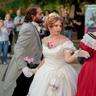 Spettacolo con abiti e danze ottocentesche a Porta Galliera