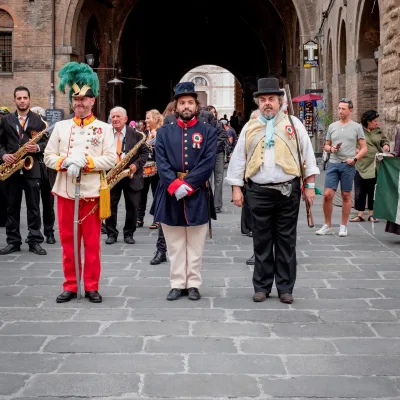 Parata storica nel centro di Bologna con scene rievocative in via Rizzoli