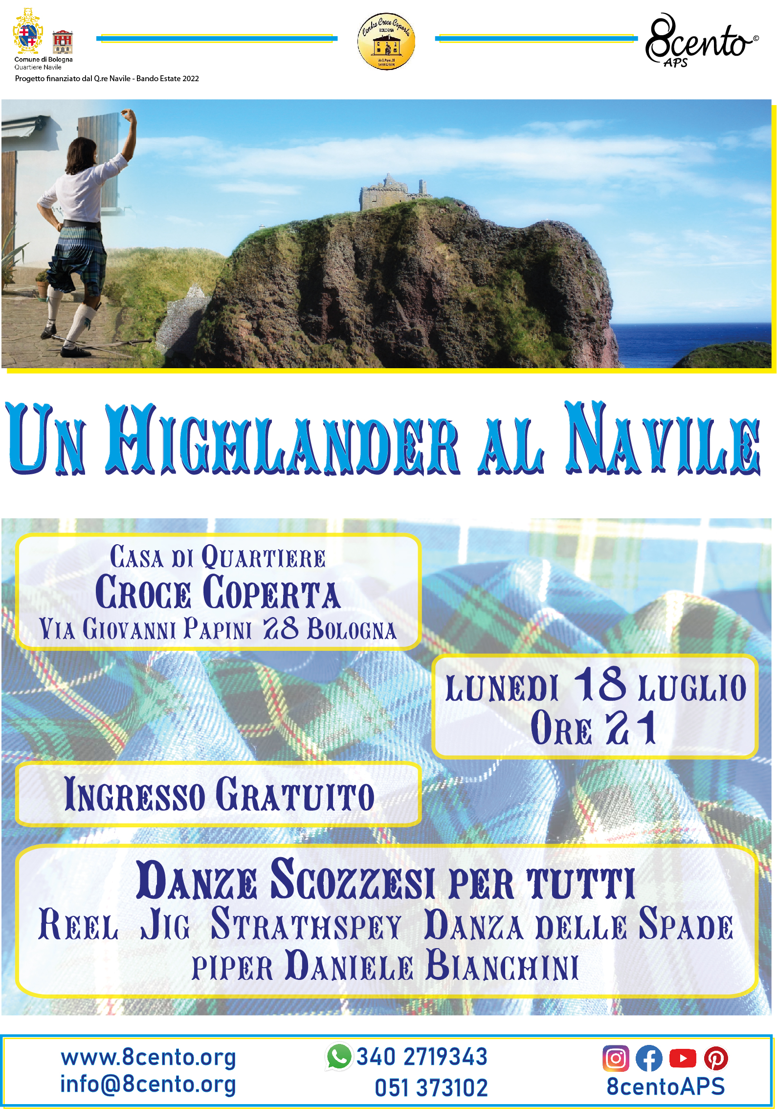 Ultima di tre serate di danze e musica che faranno scoprire ai cittadini del Quartiere Navile la bellezza e il fascino della musica e della danza della tradizione scozzese.