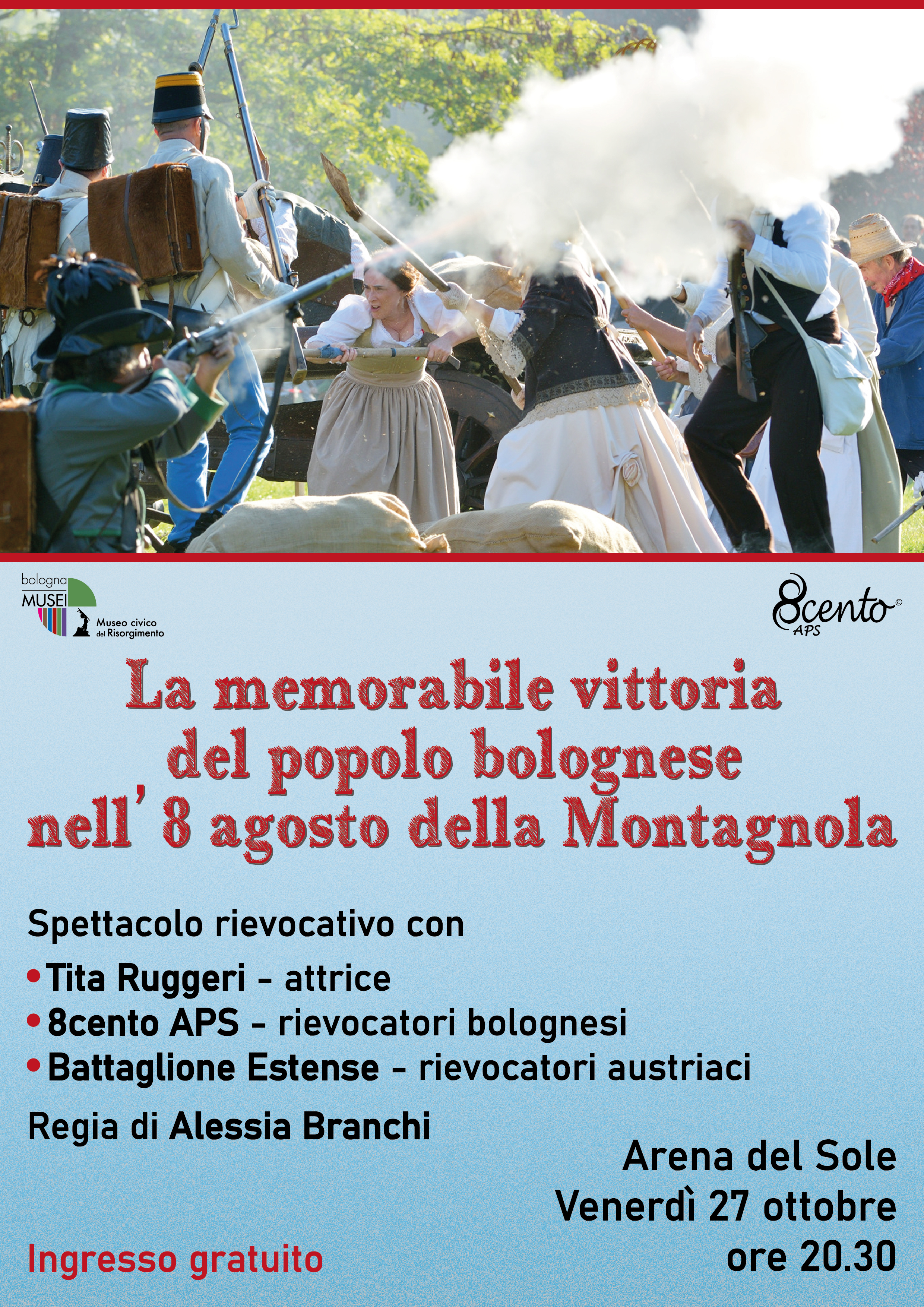 Dopo soli 20 giorni dal fatto andò in scena all’Arena del Sole il dramma di Agamennone Zappòli “La memorabile vittoria dell’8 agosto nella Montagnola ovvero il trionfo del Popolo Bolognese contro li barbari tedeschi”. Essere esattamente nello stesso teatro significa tenere alta la memoria di un episodio che toccò l’anima dei bolognesi e che rappresenta un’importante pagina di Storia, probabilmente la più significativa del Risorgimento del nostro territorio.