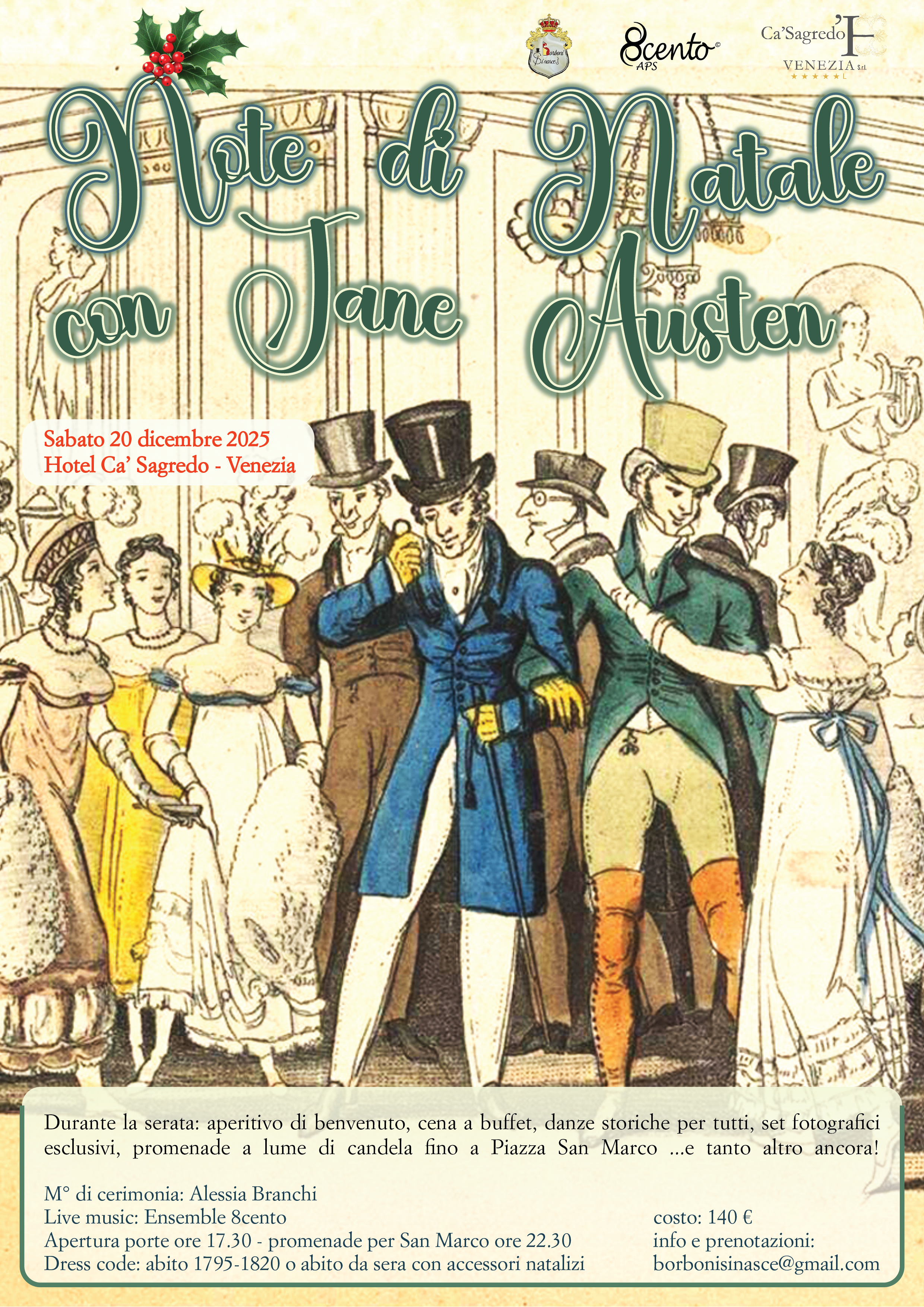 Dress code: abito storico 1795-1820, o abito da sera con accessori natalizi